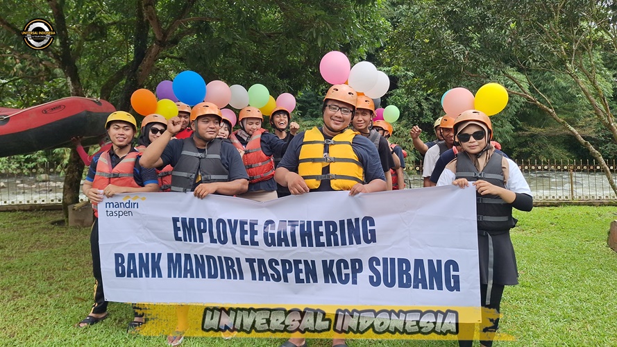 PT. MANDIRI TASPEN KCP. SUBANG Rafting Lembang Bandung Arung Jeram Lembang Bandung, Paket Wisata Gathering Rafting Lembang Bandung Grup Anda Menjajal Tantangan Jeram Asmara, Jeram Zig Zag Serta Jeram Ombak, Track Variatif Inilah Keseruan Peserta Rafting Lembang Bandung Akan Lebih Bisa Merasakan Sensasi Wisata Sungai, Namun Panorama Pemandangan Untuk Abadikan Moment Petualangan Rafting Lembang Bandung Grup Anda Seperti, Tebing Canyon, Air Terjun Bidadari Serta Terasering Persawahan, Gathering Rafting Lembang Bandung Bersama Kami UNIVERSAL INDONESIA Event And Tour Organizer.